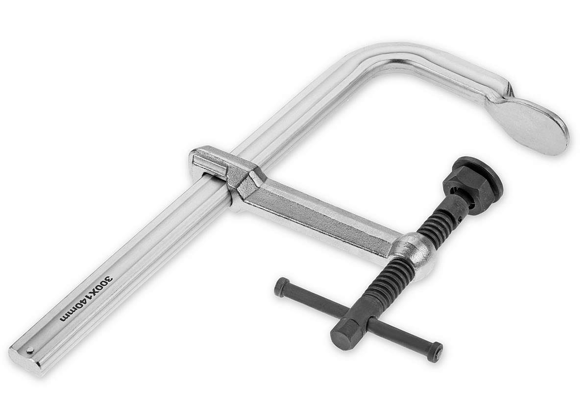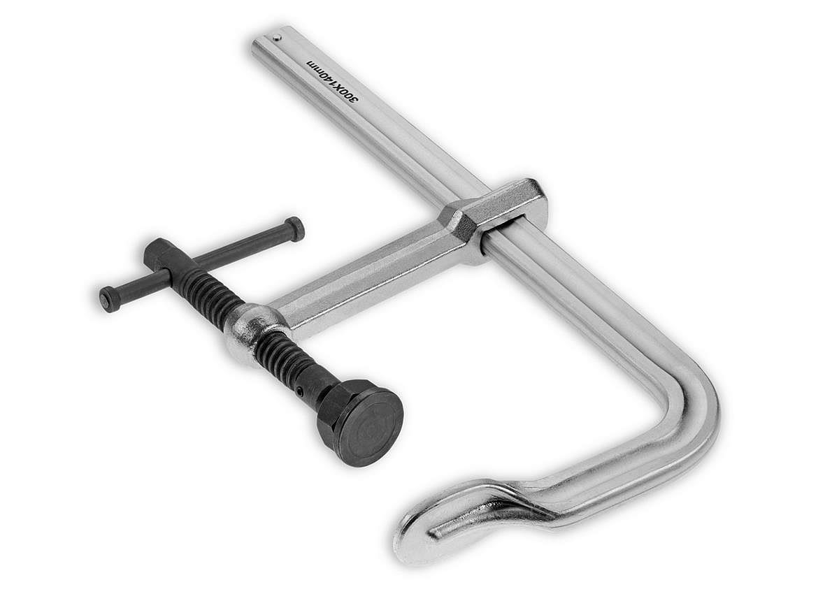 Струбцина цельнометаллическая F-образная 140/300, максимальное усилие 12 кН, поворотная опорная пластина, Т-образная рукоятка, KANCA