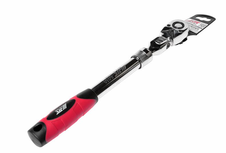 - Гибкая поворотная головка трещотки со стопором, 72 зубца с углом вращения 5°.