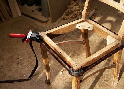 Ленточный зажим предназначен для фиксации прямоугольных деталей из дерева, пластмассы или стекла.