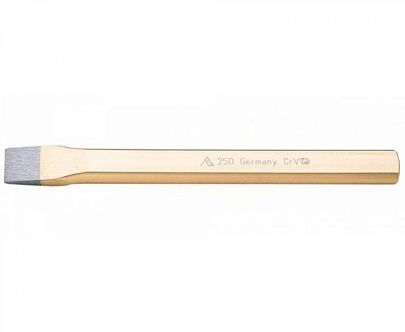 Инструмент выполнен из хромованадиевой стали и окрашен, что делает его прочным и долговечным. Зубило эффективно при обработке металла.