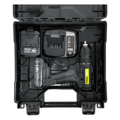 Дрель-шуруповерт DRD55-18 в комплекте с 2 Li-ION аккумуляторами емкостью 2,0 Ач и зарядным устройством в кейсе