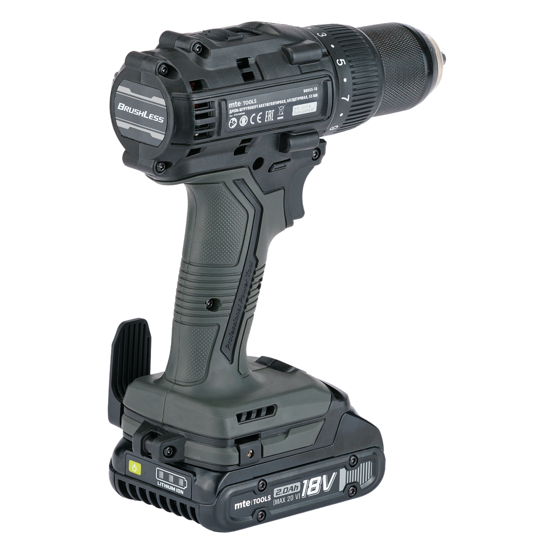 Дрель шуруповерт аккумуляторная бесщеточная 55 Нм DRD55-18, кейс, з/у, 2 АКБ 2 Ач