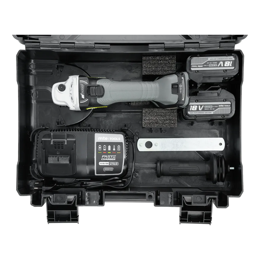 УШМ ANG125-18 в комплекте с 2 Li-ION аккумуляторами емкостью 5,0 Ач и зарядным устройством в кейсе