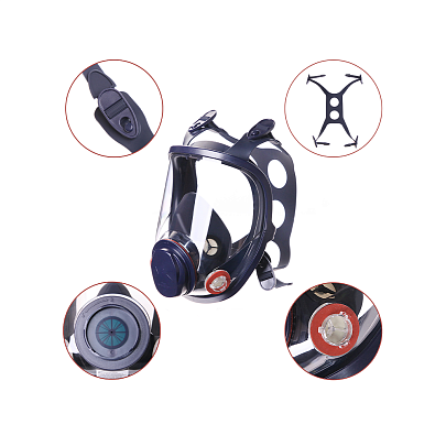 Современная полнолицевая изолирующая маска для комфортной работы: эргономичная форма, удобные застёжки оголовья, система быстрого сброса.