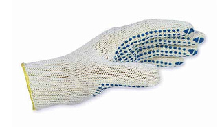 Перчатки вязанные Х/Б с точечным ПВХ покрытием, 4 нити, ручной оверлок манжеты, "Премиум"