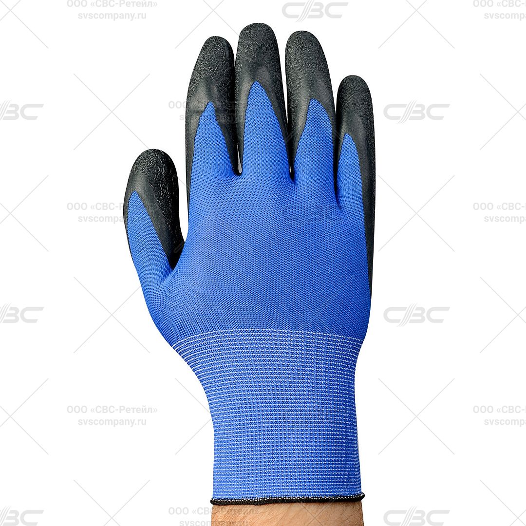 Перчатки нейлоновые синие с черным латексным покрытием р.10, СВС
