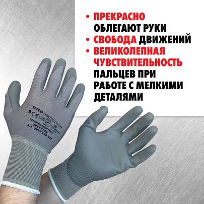 Тонкое "дышащее" полиуретановое покрытие ладони обеспечивает хороший захват деталей и инструментов. Покрытие не содержит силикон и не оставляет следов на глянцевых и стеклянных поверхностях.