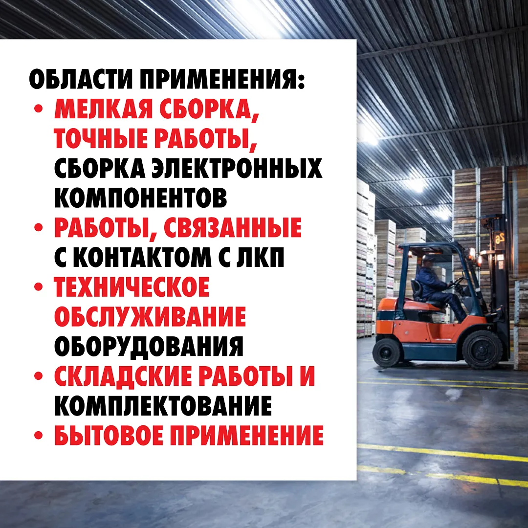 Идеальны для мелкой сборки и других точных работ в сухих средах, а также для прочих работ, требующих подвижности и максимальной тактильной чувствительности