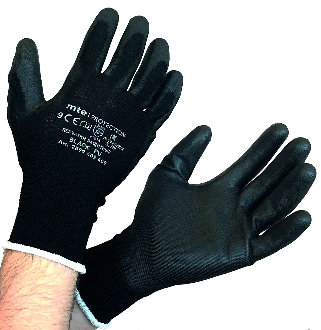 Перчатки перчатки полиэстер/пу, черные, р.10, mte