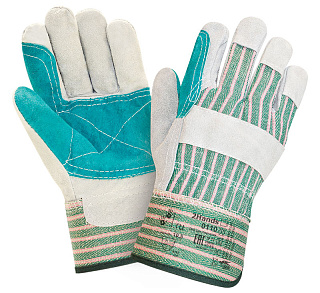 Конструкция: защитная крага, комбинированные спилок/хлопковая ткань, двойной слой спилка на рабочей поверхности