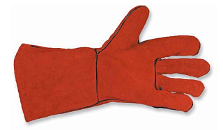 Прочные перчатки сварщика (краги) из цельного спилка КРС, пятипалые, с подкладкой из фланели и прочной льняной ткани, длиной 350 мм (+10/-5мм). Спилок КРС однородный, сорт АВ (1,4+/– 0,2 мм), шлифованный, красного цвета. Швы — негорючая нить Кевлар, усилены вставками из кожи.