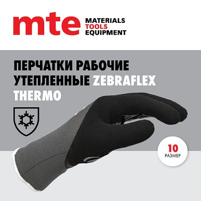 Перчатки защитные утепленные с покрытием из вспененного латекса Zebraflex THERMO р.10, mte
