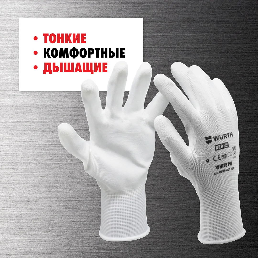 Тонкое "дышащее" полиуретановое покрытие ладони обеспечивает хороший захват деталей и инструментов. Покрытие не содержит силикон и не оставляет следов на глянцевых и стеклянных поверхностях.
