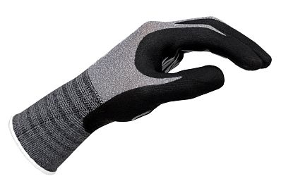 - Покрытие на ладони и пальцах из вспененного нитрила с полосками «зебра» из монолитного нитрила обеспечивают улучшенное сцепление с поверхностями.