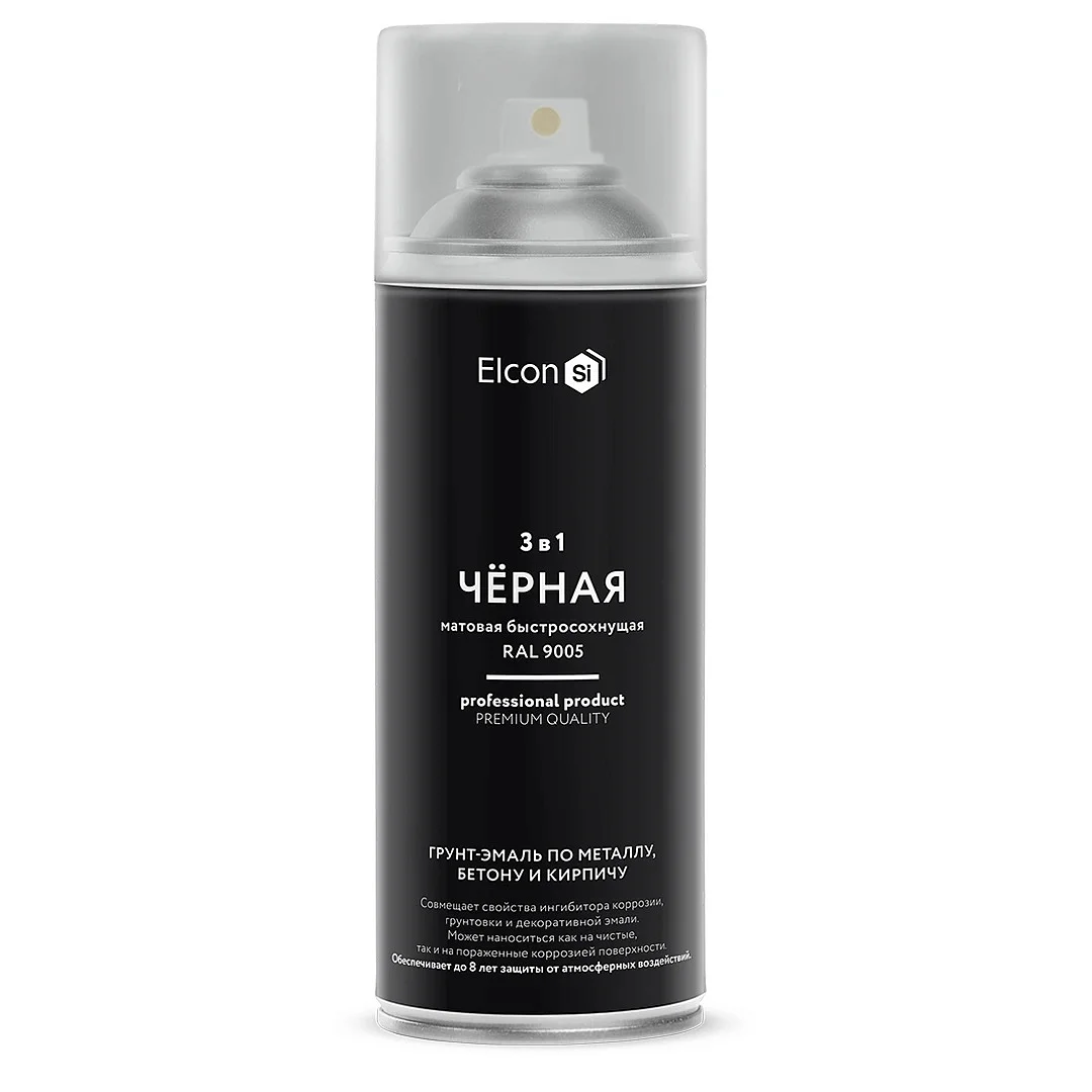 Грунт-эмаль 3 в 1 быстросохнущая спрей черная RAL9005 520/400 мл, Elcon