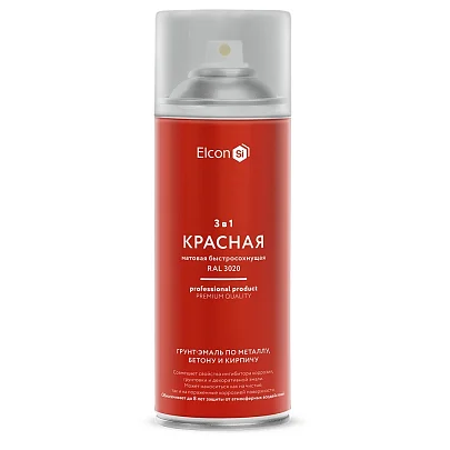 Грунт-эмаль 3 в 1 быстросохнущая спрей красная RAL 3020 520/400 мл, Elcon