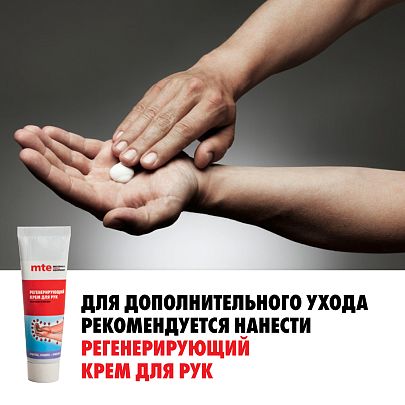 Перед началом любых работ тщательно вымойте и высушите руки. Нанесите тонкий слой крема на всю поверхность кожи, уделяя особое внимание участкам, наиболее подверженным воздействию агрессивных веществ. Дайте защитному слою высохнуть в течение 2-3 минут для формирования надежной «перчатки». Рекомендуется повторять нанесение дважды в течение дня. После завершения работы просто смойте крем водой, чтобы удалить его вместе со всеми прилипшими загрязнениями. Для усиления регенерации и дополнительного ухода за очищенной кожей, воспользуйтесь регенерирующим кремом (арт. 2890 600 300).
