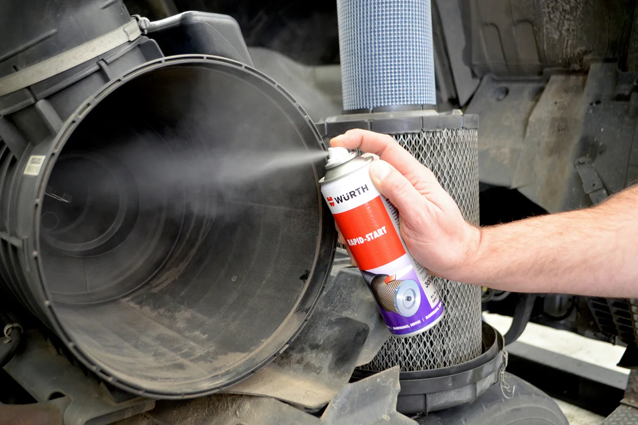 Тщательно встряхните баллон перед использованием. Быстро распылите состав в течение 1–2 секунд непосредственно в патрубок воздухоочистителя и сразу запускайте двигатель. Если после двух или трех попыток мотор не заводится, прекратите использование спрея и проверьте исправность системы зажигания. Перед началом работ обязательно проверьте совместимость средства с материалами и избегайте попадания прямых солнечных лучей на баллон.