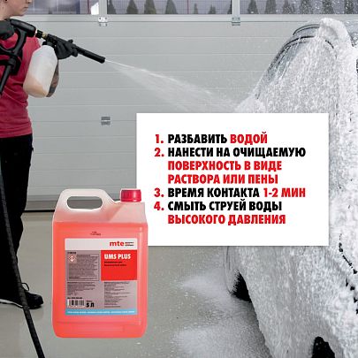 Концентрированное моющее средство для мытья транспортных средств бесконтактным способом. Подходит для любого типа моечного оборудования, включая дозирующее.