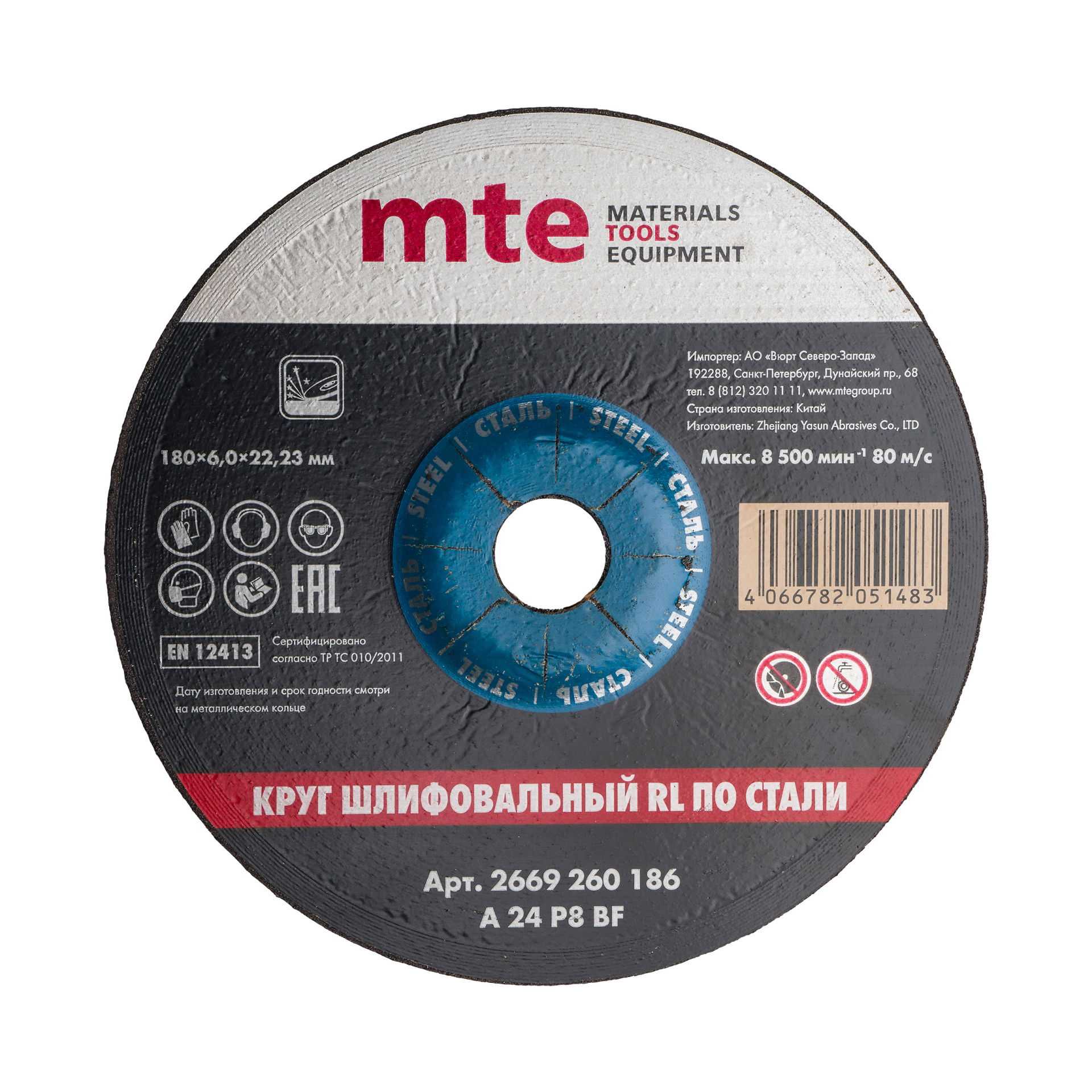 Круг шлифовальный RL по стали D180X6,0X22,2 мм, mte